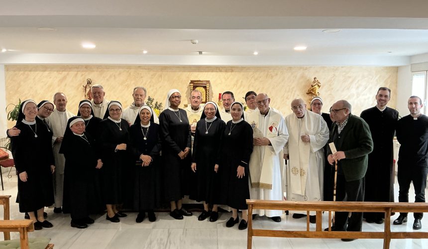 En la foto preside la Santa Misa el P. Daniel León que es el director de la Casa Sacerdotal, junto a otros sacerdotes de Talavera de la Reina (Toledo) y también aparecen otras hermanas que trabajan en otra Casa de sacerdotes.